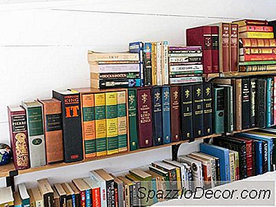 "A coleção de livros do meu marido é uma das nossas coisas favoritas na casa. Eu acho que eles são bonitos e adicionam um certo aconchego ao espaço", compartilha Kelly. "A maioria das pessoas esperava que colocássemos todos em armazenamento quando nos mudássemos, mas encontramos uma maneira de fazer com que todos se encaixem bem."